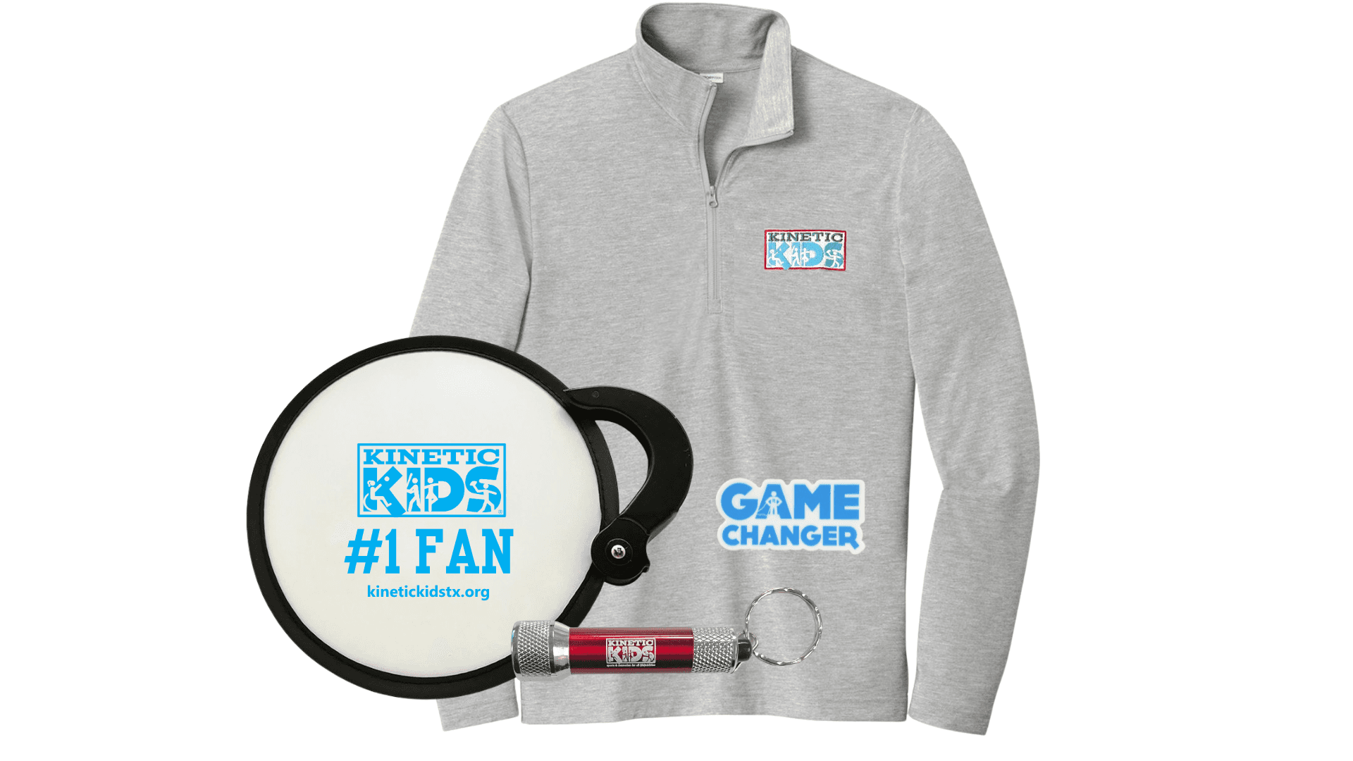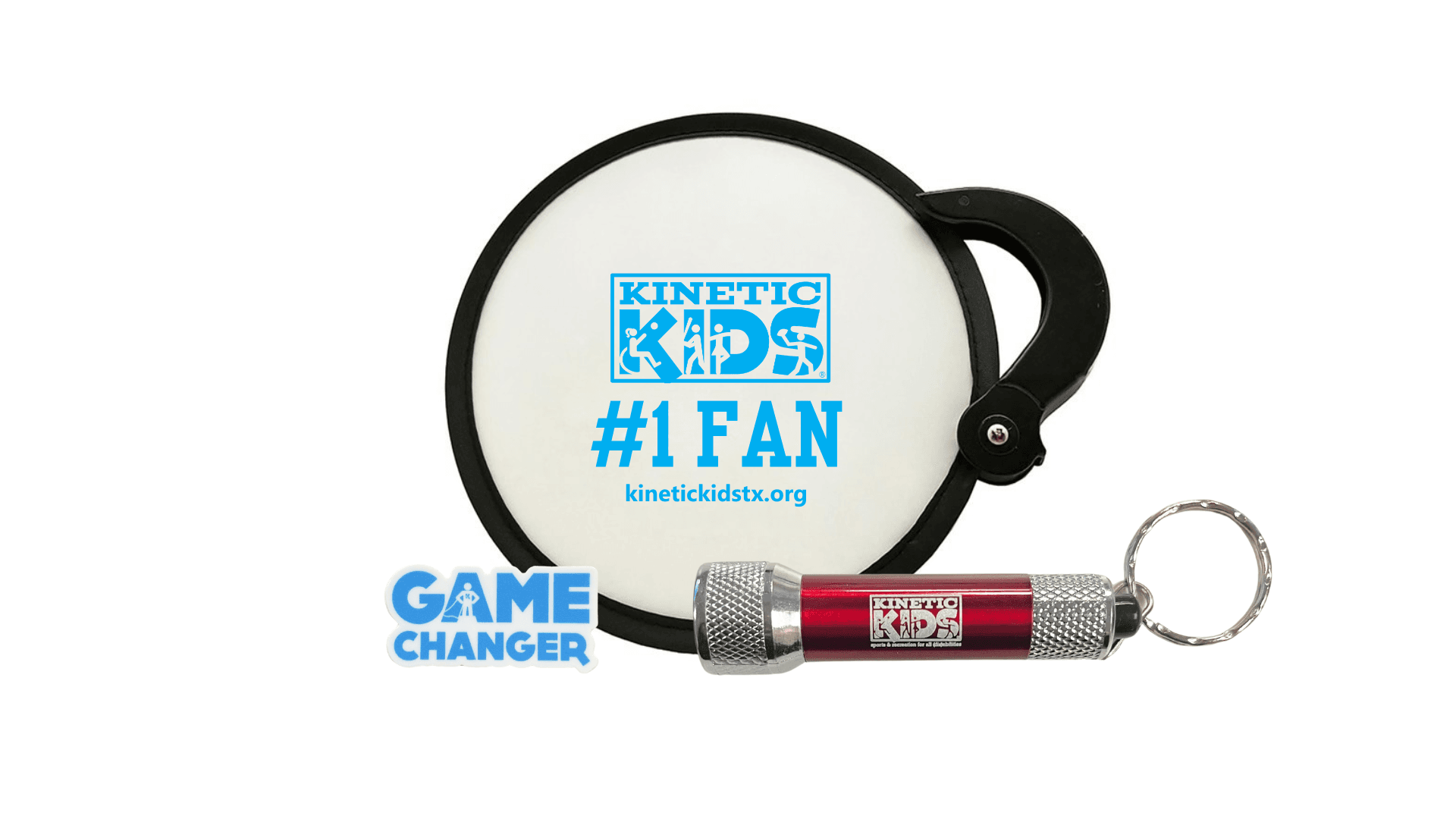 You light the way for kids with disabilities! Now you can light your way with a handy Kinetic Kids flashlight, plus a fan and sticker when you join the Game Changers club at $50+ a month.